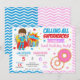 With bright stars, soft watercolor accents, and a cheerful blue and pink zigzag border, this invitation is perfect for a joint birthday party, boy & girl shared birthday, superhero and donuts celebration, sweet treats party, editable kids birthday invite, and two-theme birthday event.