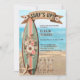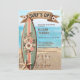 Este convite para o chá de fraldas "Surf para cima", com o formato floral, apresenta um fundo de pergaminho macio, flores de hibisco pastel e um prato de superfície retrorreflector inclinado contra uma cerca de madeira rústica. Escrito elegante ao estilo vintage e uma paleta de cor quente de coral, rosa-pincel, verde-sábio e bege arenoso criam uma simpática estética costeira. Se você precisar de outro produto ou personalização correspondente, por gentileza, envie uma mensagem via Zazzle.