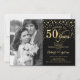 Convite Surpreenda 50º Aniversário com Foto Preto e Dourad