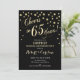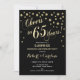 Design elegante em preto e dourado falso com confetes e fonte de texto. Saúde por 65 Anos! Perfeito para uma festa sofisticada. Mensagem para mim se precisar de um ano personalizado.