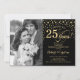 Convite Surpreenda com 25º Aniversário com Foto Preto Dour