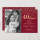 Convite de Surpresa para Bodas de 40 Anos com Foto. Design elegante em vermelho rubi e dourado com fonte cursiva e confetes. Pode ser personalizado para mostrar qualquer ano de casamento. Saúde por 40 anos!