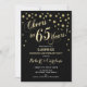 Design elegante em preto e dourado brilhante falso com confetes e fonte cursiva. Parabéns por 65 Anos! Perfeito para uma festa sofisticada. Mensagem-me se precisar de um ano personalizado.