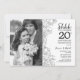 Surpreenda o 20º Aniversário Com Foto - Convite Floral Preto e Branco. Design moderno com desenhos botânicos e fonte de letra script. Cartão de convite simples e moderno perfeito para uma celebração de aniversário de casamento elegante. Pode ser personalizado para refletir qualquer ano de casamento. Convites impressos pela Zazzle ou modelo digital para impressão instantânea.