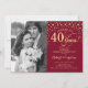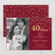 Convite de Surpresa para o 40º Aniversário de Casamento com Foto. Design elegante em vermelho rubi e dourado com fonte script e confetes. Pode ser personalizado para mostrar qualquer ano de casamento. Saúde por 40 anos!