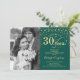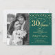 Convite de Surpresa para Bodas de Rubi com Foto. Design elegante em verde esmeralda e dourado com fonte manuscrita e confetes. Pode ser personalizado para mostrar qualquer ano de casamento. Saúde por 40 anos!