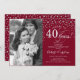 Convite de Surpresa para Bodas de 40 Anos com Foto. Design elegante em vermelho rubi e prata com fonte de caligrafia e confetes. Pode ser personalizado para mostrar qualquer ano de casamento. Saúde por 40 anos!