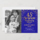 Design elegante em azul safira com fonte de escrita em ouro falso e confetes. Mensagem-me se precisar de ano personalizado.