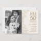 Convite Surpresa de 50º Aniversário Com Foto - Floral Dourado. Design moderno com desenhos de esboços botânicos e fonte de letra script. Cartão de convite simples e moderno perfeito para uma celebração de aniversário de casamento elegante. Pode ser personalizado para refletir qualquer ano de casamento. Convites impressos da Zazzle ou modelo digital para impressão instantânea.
