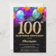 Surpreenda o 100º aniversário, Black e Dourado Balões Coloridos e Confetti Invitation. Para mais personalização, clique no botão "Personalizar" e use nossa ferramenta de design para modificar este modelo.