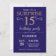 Surpreenda o Convite de Aniversário de 15 com Azul Marinho e Dourado Fundo de Brilho. Aniversário de criança. Menina ou Menina Menina Adolescente Convidam. Qualquer idade. Para mais personalização, clique no botão "Personalizar" e use nossa ferramenta de design para modificar este modelo.