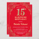 Convite Surpresa 15 de Aniversário Vermelho e Dourado Bril
