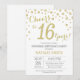 Surpreenda o 16º Convite de Aniversário com Dourado Fundo de Diamante Glitter. Dourada Confetti. Aniversário de criança. Aniversário de Menina ou Menina de Adolescência. Para mais personalização, clique no botão "Personalizar" e use nossa ferramenta de design para modificar este modelo.