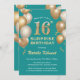 Convite Surpresa 16º aniversário do Teal e Balões Dourados