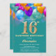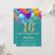 Surpreenda o 16º aniversário do Teal e os Dourados Balões Coloridos e o Confetti Invitation. Para mais personalização, clique no botão "Personalizar" e use nossa ferramenta de design para modificar este modelo.
