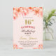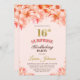 Rosa esbranquiçada e surpresa floral dourada 16º convite de aniversário.