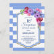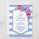 Convite de festas de janto de 16 anos de aniversário com uma surpresa floral listrada azul.