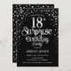 Surpresa 18º Convite de aniversário. Design elegante em prata brilhante e preto. Possui fonte de script na moda e confetti. Envie-me uma mensagem se precisar de idade personalizada.