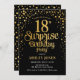 Surpresa 18º Convite de aniversário. Design elegante em ouro preto e brilhante. Possui fonte de script na moda e confetti. Envie-me uma mensagem se precisar de idade personalizada.