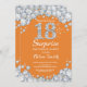 Surpresa 18º Convite de Aniversário. Fundo Vermelho de Diamante de Orange e Silver Rhinestone. Convite para o Elegante Birthday Bash. Aniversário Adulto. Aniversário das mulheres. Homens Aniversário. Para mais personalização, clique no botão "Personalizar" e use a ferramenta design para modificar este modelo.