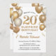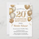 Convite Surpresa 20 de Aniversário Branco e Dourados Balõe