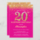 Convite Surpresa 20 de Aniversário Rosa Quente e Dourada B