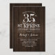 Surpresa 35º Convite à Celebração de Aniversário de Casamento. Design rústico elegante com padrão de madeira marrom-escura. Apresenta uma fonte elegante de script branco. Envie-me uma mensagem se precisar de mais personalização.