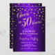 Surpreenda o 50º Convite de aniversário. Design elegante com ouro brilhante e roxo. Possui fonte de script e confetti. Anima-te a 50 anos! Me mande mensagem se precisar de uma idade personalizada.