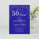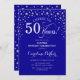 Surpreenda o 50º Convite de aniversário. Design elegante em azul real e prata brilhante falso. Apresenta a fonte do script e os diamantes confetti. Anima-te a 50 anos! Envie-me uma mensagem se precisar de mais personalização.