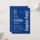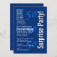 Este design moderno em azul e branco reais é uma maneira elegante de convidar seus convidados para uma festa de aniversário SURPRISE 50th. Todo texto é totalmente personalizável. Você pode alterar a cor do plano de fundo ou a cor do texto para uma aparência diferente. Embora esse design seja apresentado em um papel básico, recomendo o papel metálico calcinado, que dá aos seus convites um shimmer e brilhar festivos.