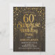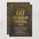 Surpresa 60º Convite de aniversário. Design rústico elegante com padrão de madeira marrom escura e ouro brilhante. Possui fonte de script na moda e confetti. Envie-me uma mensagem se precisar de idade personalizada.