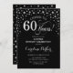 Surpresa 60º Convite de aniversário. Design elegante em prata brilhante e preto. Apresenta a fonte do script e os diamantes confetti. Saúde para 60 anos! Envie-me uma mensagem se precisar de mais personalização.