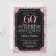 Surpresa 60º Convite à Celebração de Aniversário. Design elegante em preto e brilhante padrão de ouro rosa. Apresenta uma fonte elegante de script. Envie-me uma mensagem se precisar de mais personalização.