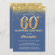 Convite Surpresa 60.º Aniversário Azul e Dourada Brilhante