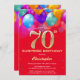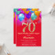 Surpresa 70 de Aniversário Vermelho e Dourado Balões Coloridos e Confetti Convite. Para mais personalização, clique no botão "Personalizar" e use nossa ferramenta de design para modificar este modelo.