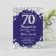 Surpresa 70 de Aniversário. Marinho Azul e Silver Rhinestone Diamond Red Background. Convidado Elegante Birthday Bash. Aniversário Adulto. Mulheres Aniversário. Homens Aniversário. Para mais personalização, clique no botão "Personalizar" e use nossa ferramenta de design para modificar este modelo.