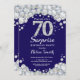 Convite Surpresa 70 de Aniversário Marinho Azul Prata Diam