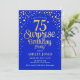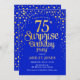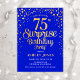 Surpresa 75º Convite de aniversário. Design elegante em azul real e ouro brilhante falso. Possui fonte de script na moda e confetti. Envie-me uma mensagem se precisar de idade personalizada.