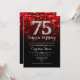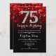 Surpresa 75º Convite de Aniversário. Design vermelho preto elegante com prata brilhante. Aniversário adulto. Apresenta diamantes, luzes de boque e fontes de script. Homens ou mulheres convidam no dia. Perfeito para uma festa de aniversário na moda. Envie-me uma mensagem se precisar de mais personalização.