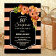 Convite de aniversário de 80 de surpresa floral com cintilação fina de preto e coral.