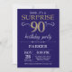 Convite Surpresa 90 de Aniversário Marinho Azul e Dourada