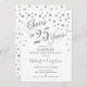 Design elegante em branco e prata brilhante falsa com confetes e fonte manuscrita. Saúde por 25 Anos! Perfeito para uma festa estilosa. Mensagem para mim se precisar de um ano personalizado.