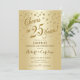 Design elegante em dourado brilhante falso com confetes e fonte script. Saúde por 25 Anos! Perfeito para uma festa sofisticada. Mensagem para mim se precisar de um ano personalizado.