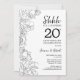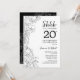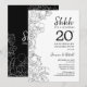 Convite de celebração de aniversário de casamento de 20 anos Black White Botanical Surprise. Design moderno minimalista com características de acentos botânicos e fonte de tipografia script. Cartão de convite floral simples perfeito para uma festa de aniversário surpresa elegante. Pode ser personalizado para qualquer ano de casamento. Convites Zazzle impressos ou modelo digital para impressão instantânea.