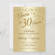 Design elegante em dourado brilhante falso com confetes e fonte de texto. Saúde por 30 Anos! Perfeito para uma festa estilosa. Mensagem para mim se precisar de um ano personalizado.