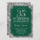 Convite de Surpresa de Celebração de 35º Aniversário de Casamento. Design elegante e sofisticado em verde floresta esmeralda e prata brilhante falsa. Apresenta fonte de letra elegante. Mensagem para mim se precisar de mais personalização.