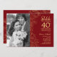 Surpresa de 40º Aniversário Com Foto - Convite Floral Rubro Dourado. Design moderno com desenhos de contorno botânico e fonte de letra script. Cartão de convite simples e moderno perfeito para uma celebração de aniversário de casamento elegante. Pode ser personalizado para refletir qualquer ano de casamento. Convites Zazzle impressos ou modelo digital para impressão instantânea.