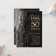 Convite de celebração de aniversário de 50 anos de áгата preto e dourado. Design moderno e elegante com fundo de geodo de mármore de ágata aquarela, dourado brilhante falso e fonte de tipografia script. Cartão de convite elegante perfeito para uma festa de aniversário de casamento sofisticada. Convites Zazzle impressos ou modelo digital para impressão instantânea.