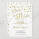 Design elegante em branco e dourado falso com confetes e fonte cursiva. Saúde por 50 Anos! Perfeito para uma festa estilosa. Mensagem para mim se precisar de um ano personalizado.