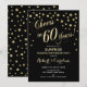 Design elegante em preto e dourado falso com confetes e fonte manuscrita. Parabéns por 60 Anos! Perfeito para uma festa sofisticada. Mensagem para mim se precisar de um ano personalizado.